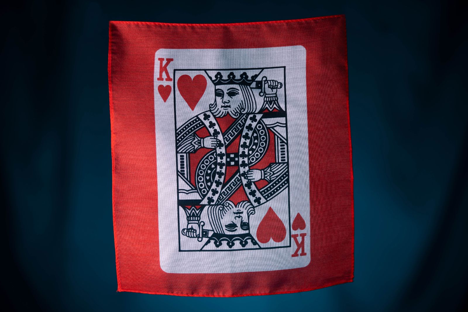 カードの表が印刷された22cmサイズ、ベース・カラーが赤、黒の2種類のシルクになります。いろいろな用途でご利用いただけます。